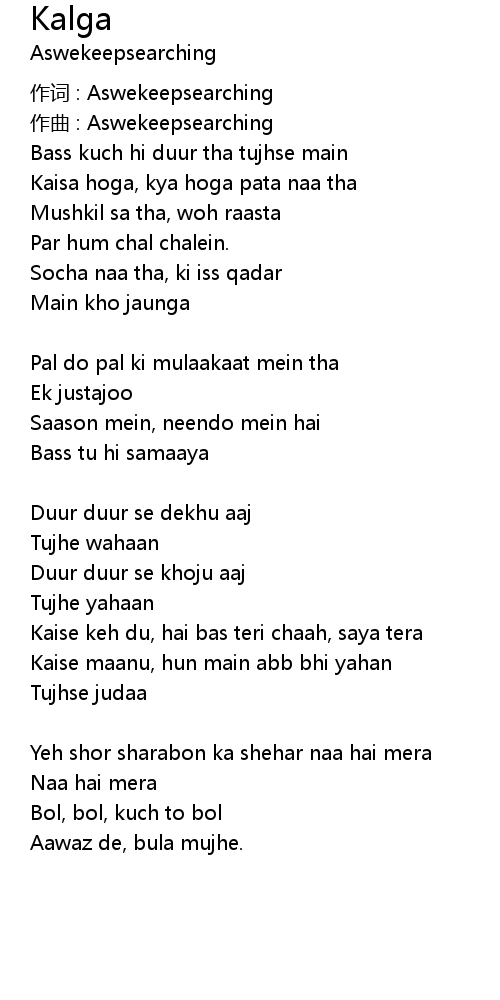 | Kaise keh du, hai bas teri chaah, saya tera | |