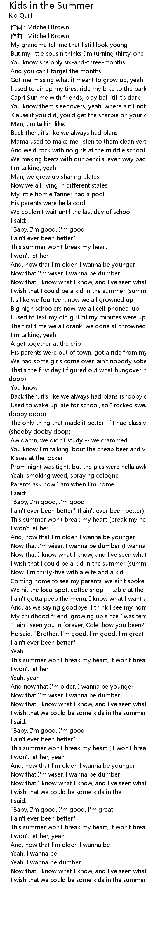 | [02:19.347] | I wish that I could be a kid in the summer (summer, summer, yeah) |