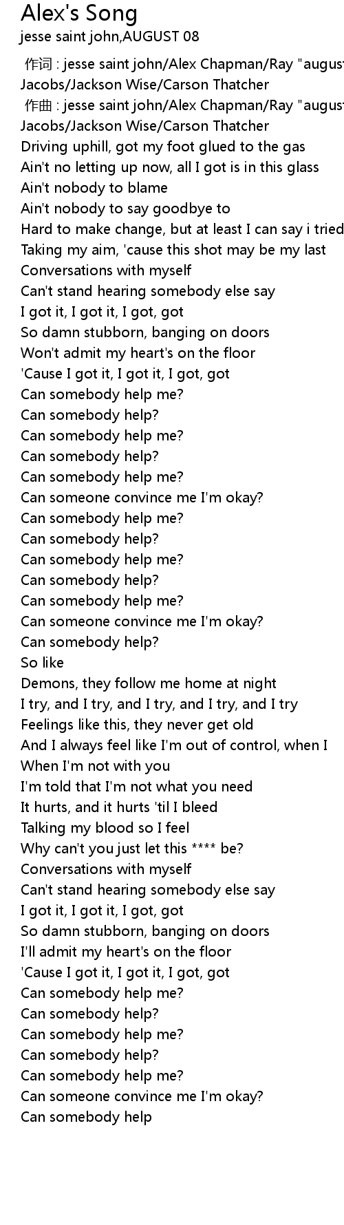 | [00:00.000] | 作词 : jesse saint john/Alex Chapman/Ray "august Grant" Jacobs/Jackson Wise/Carson Thatcher |