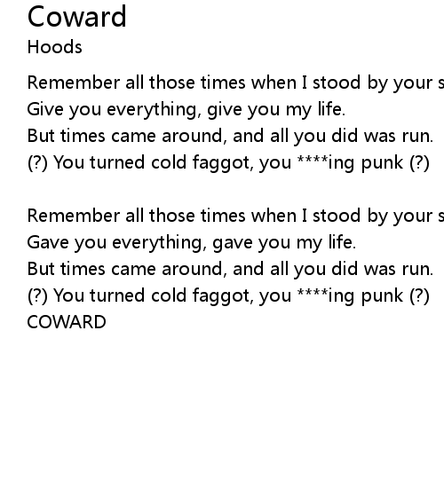 | (?) You turned cold faggot, you ****ing punk (?) | |