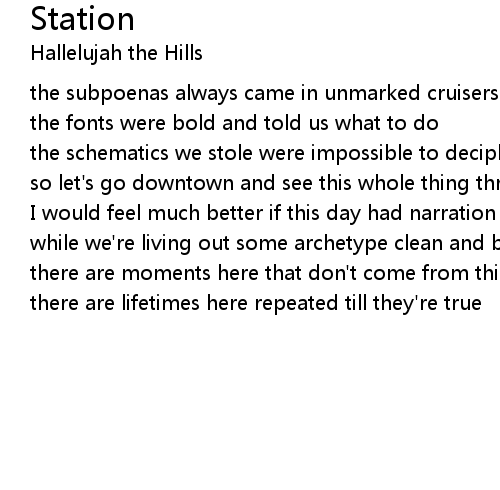 | Artist | Hallelujah the Hills |