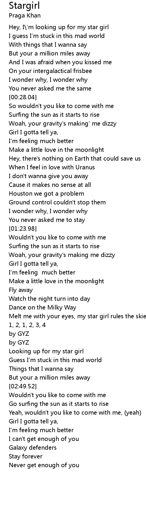 Hey, I\'m looking up for my star girl |