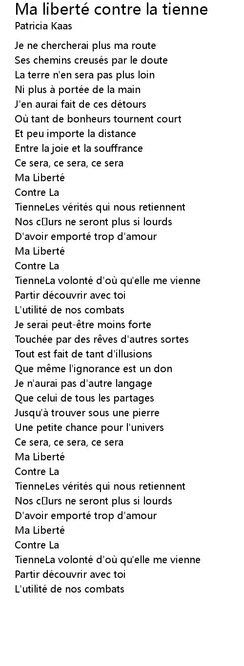 | Song | Ma liberté contre la tienne |