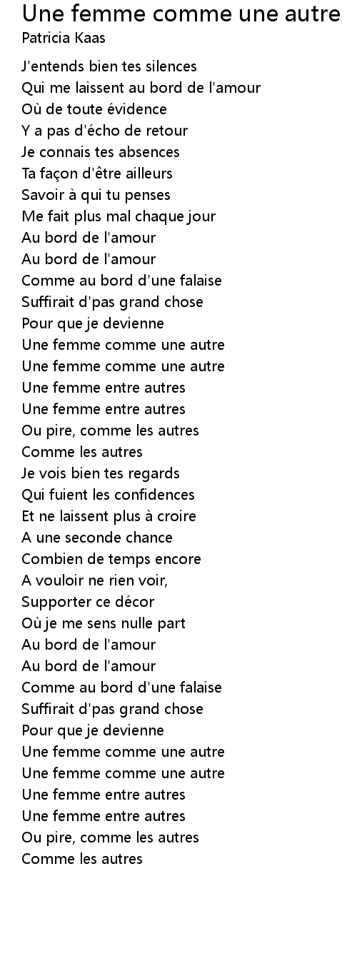 | Song | Une femme comme une autre |
