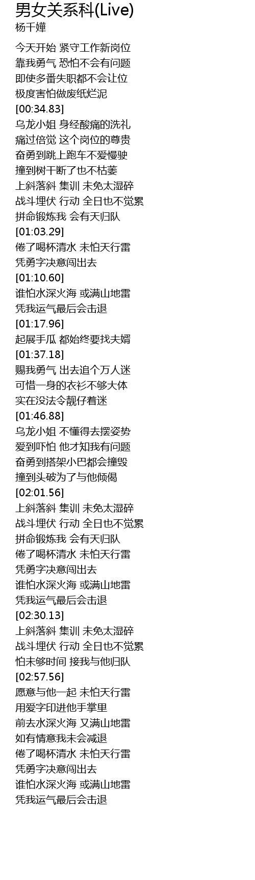 | [00:25.67] | kào wǒ yǒng qì kǒng pà bú huì yǒu wèn tí |