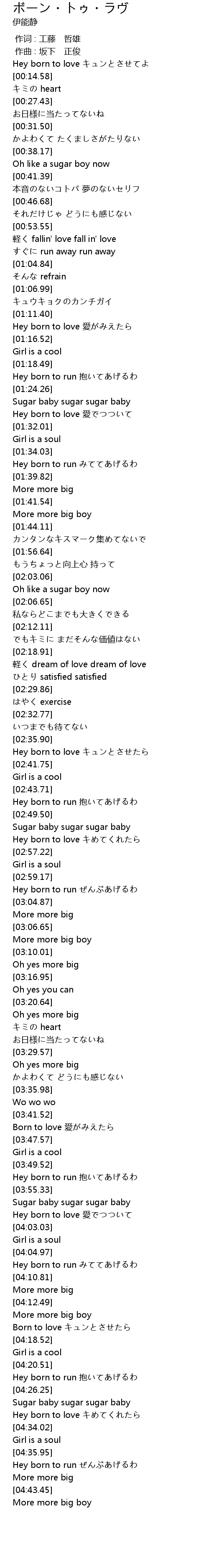 | [00:10.43] | Hey born to love キュンとさせてよ |