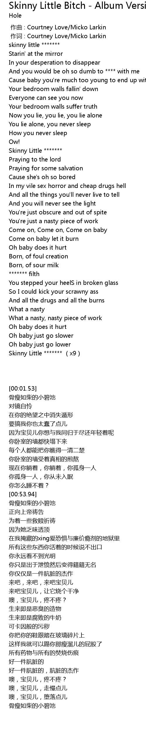 | [00:01.00] | 作词 : Courtney Love/Micko Larkin |