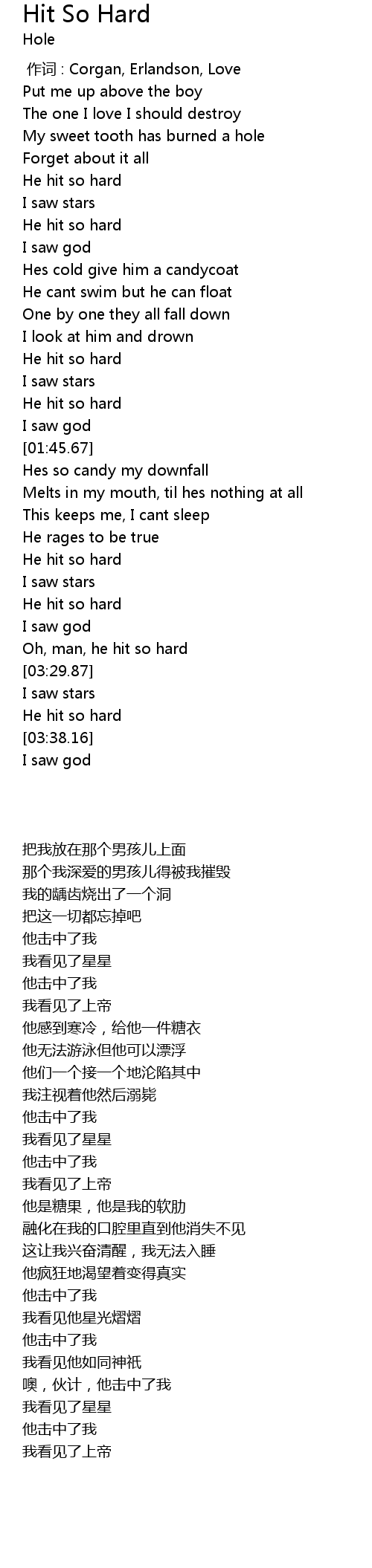 | [01:28.54] | He hit so hard |