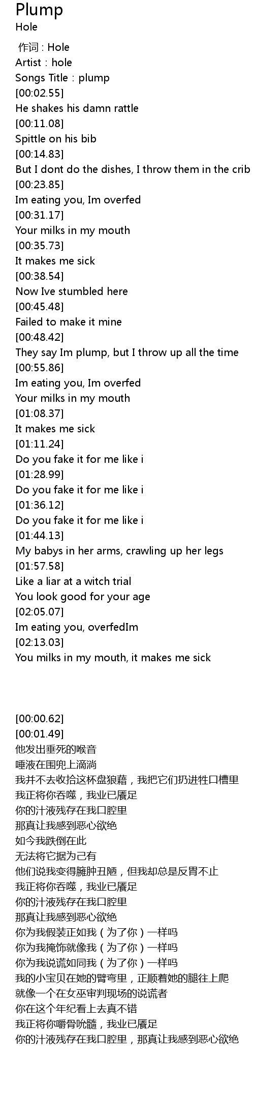 | [00:49.92] | They say Im plump, but I throw up all the time |