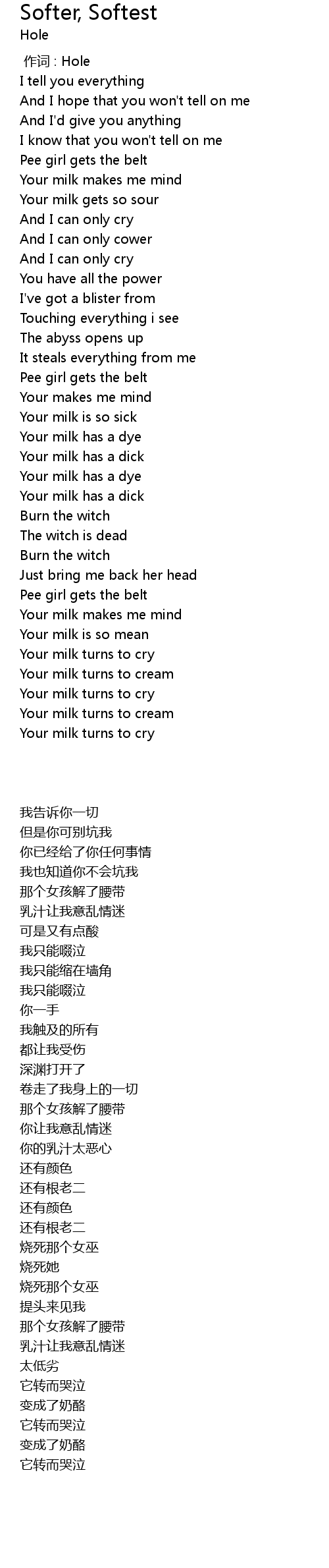 | [02:38.13] | Your milk is so mean |