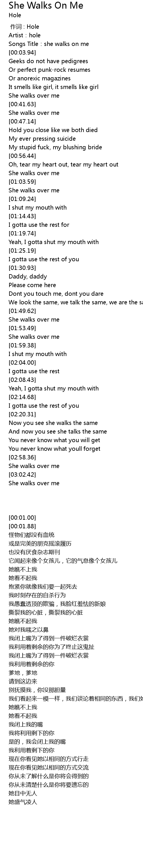 | [00:01.00] | Artist:hole |