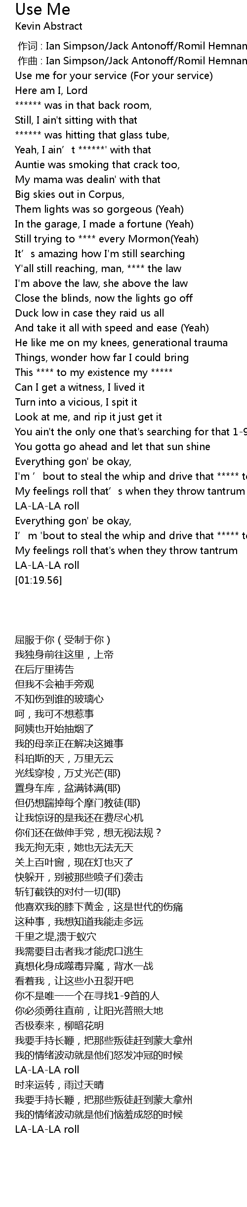 | [00:00.17] | Use me for your service (For your service) |