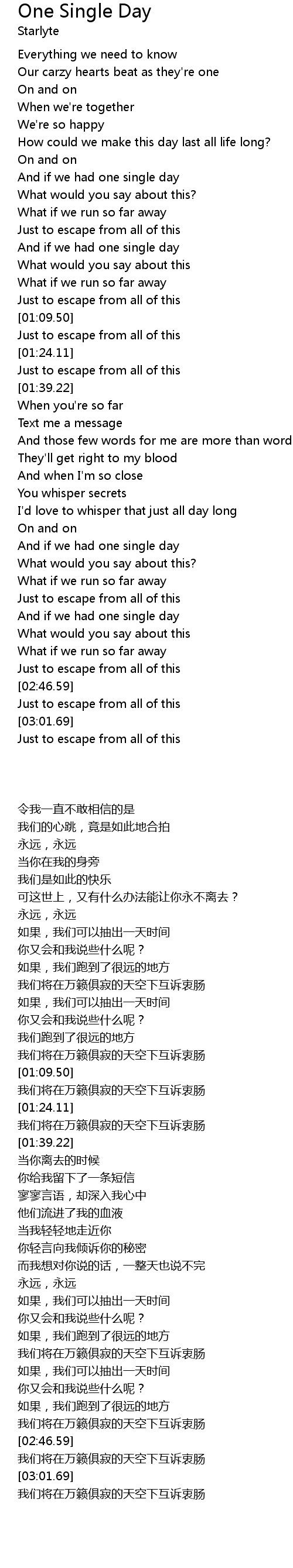 One Single Day Lyrics