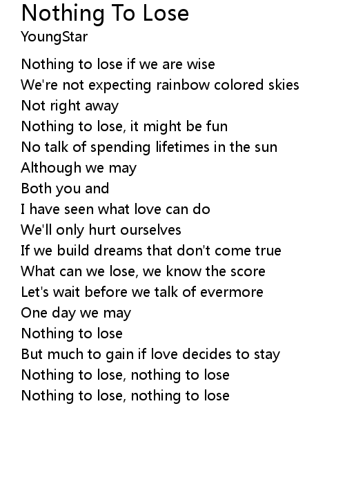 | Nothing to lose, nothing to lose |