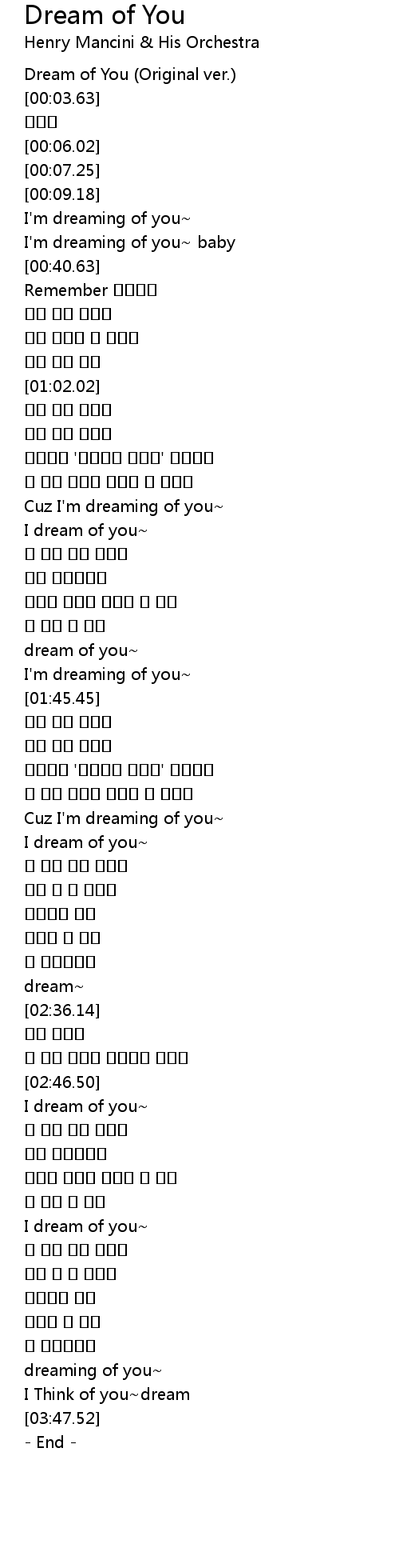 | [01:15.55] | Cuz I'm dreaming of you~ |