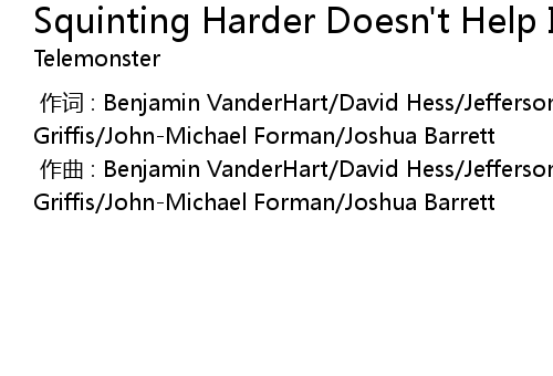 | [00:00.000] | 作曲 : Benjamin VanderHart/David Hess/Jefferson Griffis/John-Michael Forman/Joshua Barrett |
