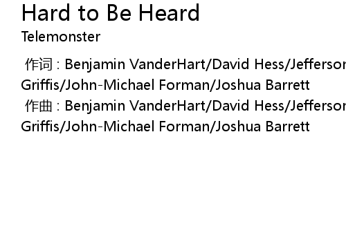 | [00:00.000] | 作词 : Benjamin VanderHart/David Hess/Jefferson Griffis/John-Michael Forman/Joshua Barrett |