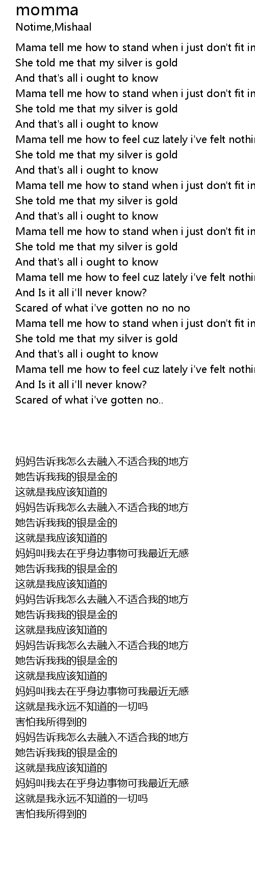 | [00:48.40] | Mama tell me how to stand when i just don't fit in |