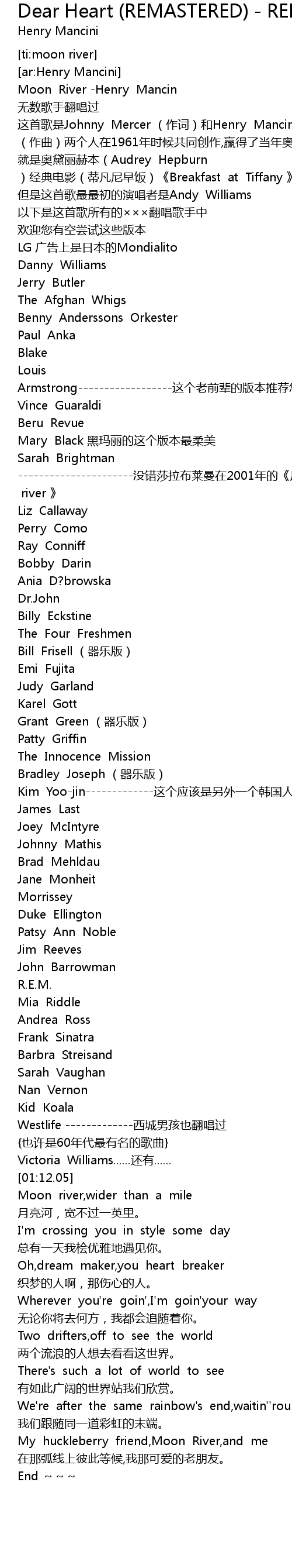 | [00:03.96] | Moon River -Henry Mancin |