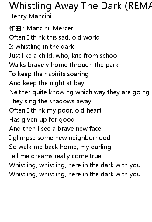 | Whistling, whistling, here in the dark with you | |