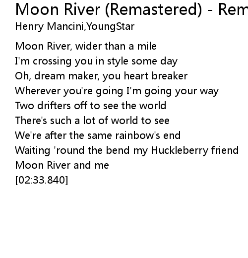 | [02:18.150] | Waiting 'round the bend my Huckleberry friend |