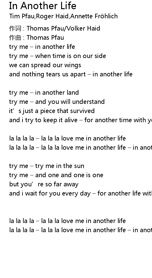 | la la la la – la la la love me in another life – in another time | |
