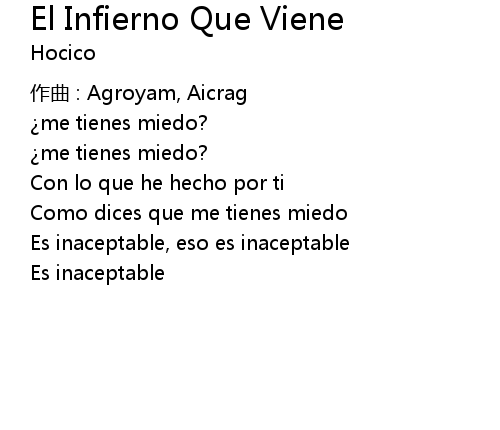 | Song | El Infierno Que Viene |