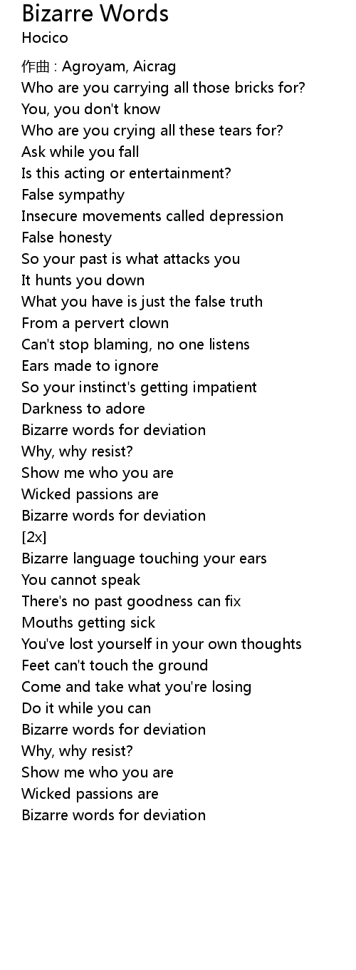 | Song | Bizarre Words |