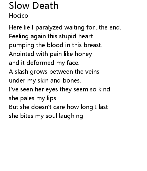 | Here lie I paralyzed waiting for...the end. | |
