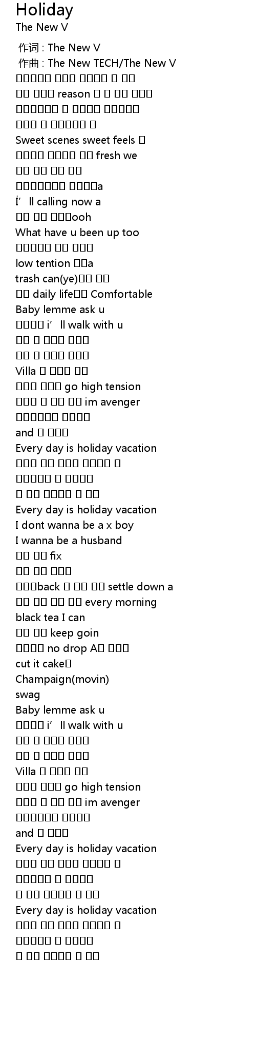 | [02:03.858] | Every day is holiday vacation |