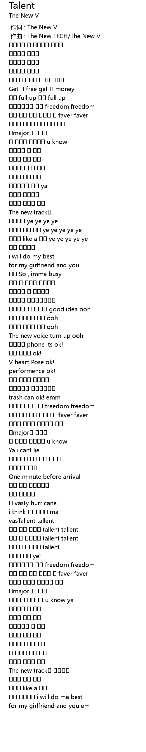 | [00:00.000] | 作词 : The New V |