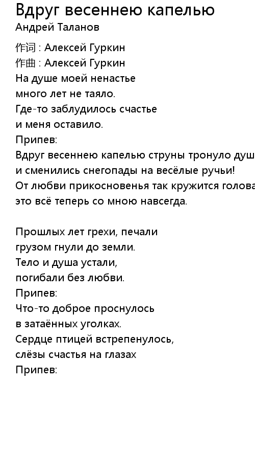 | Song | Вдруг весеннею капелью |