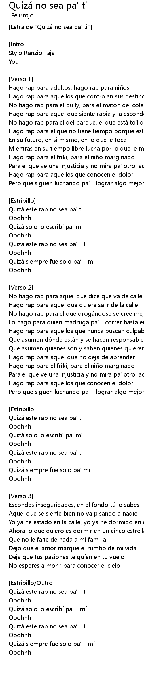 | No hago rap para el del parque, el que está to' l dí a fumando | |