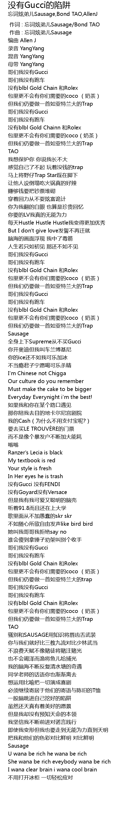 | [02:21.808] | 没有Gucci 没有FENDI |