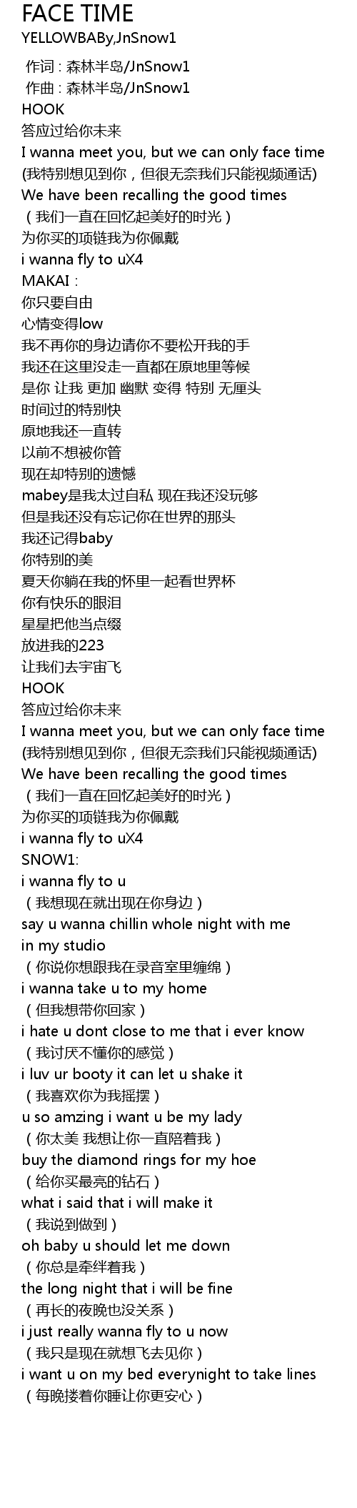 | [00:14.871] | I wanna meet you, but we can only face time |