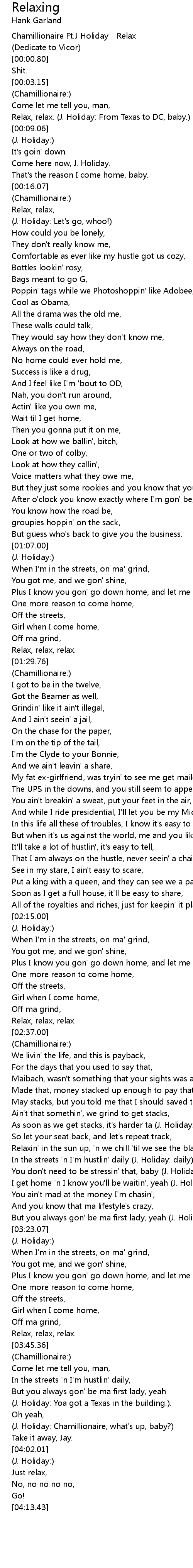 As soon as we get stacks, it's harder ta (J. Holiday: relax, relax), |