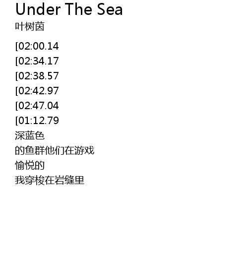 | [00:25.30][02:00.14][03:26.14] | 叶树茵-Under the sea |