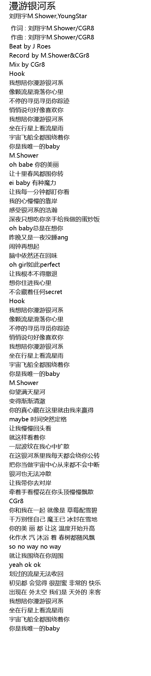 | [00:13.810] | wǒ xiǎng péi nǐ màn yóu yín hé xì |