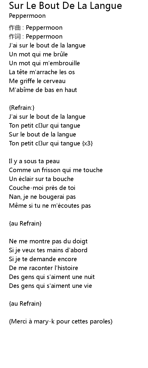 | Song | Sur Le Bout De La Langue |
