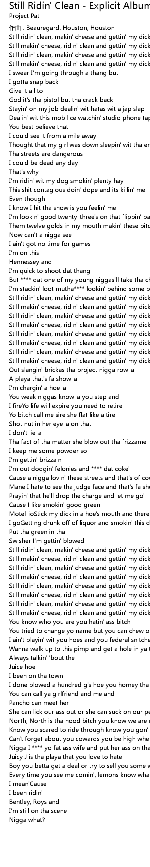 | Song | Still Ridin' Clean - Explicit Album Version |