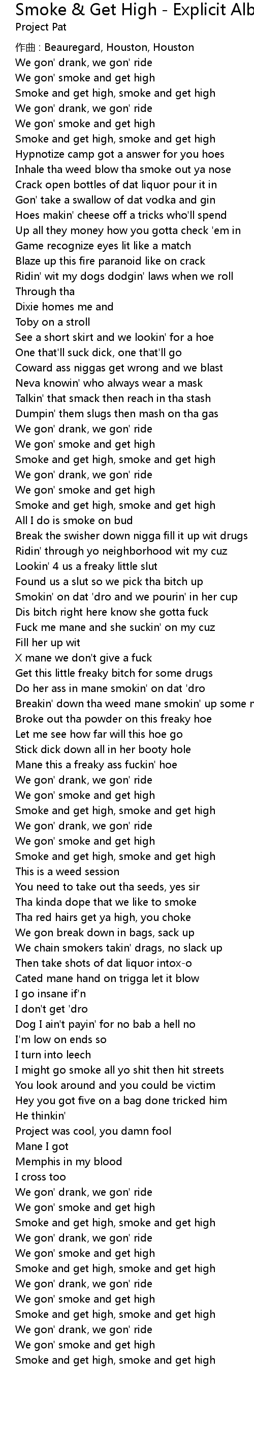 | Song | Smoke & Get High - Explicit Album Version |