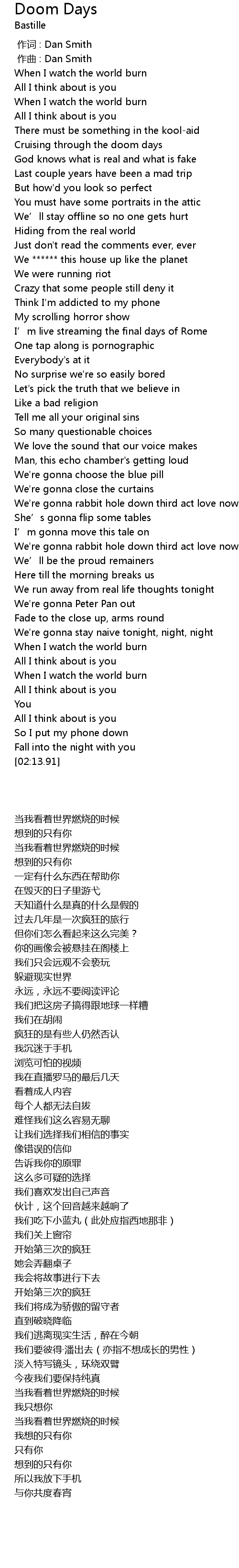 | [00:13.89] | When I watch the world burn |