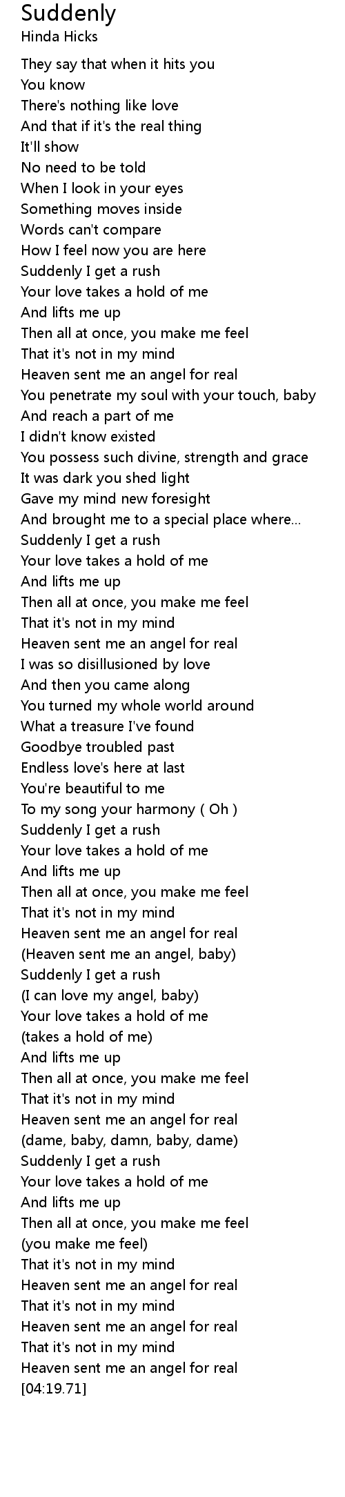 | [04:13.00] | Heaven sent me an angel for real |