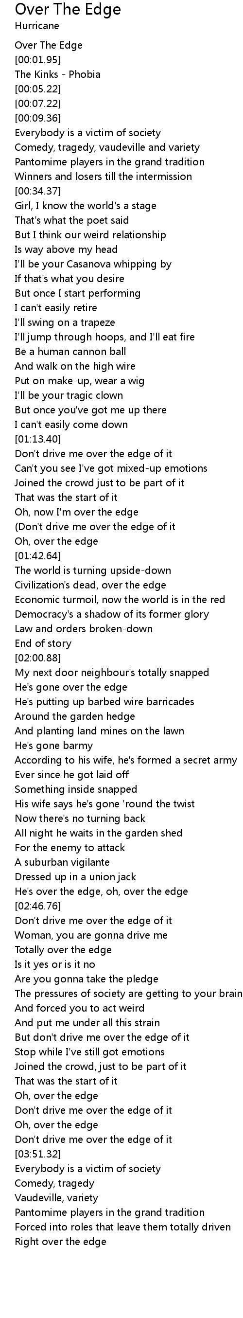 (Don't drive me over the edge of it |