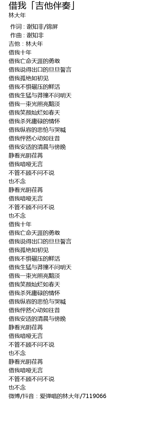 | [03:22.472] | 微博/抖音:爱弹唱的林大年/7119066 |