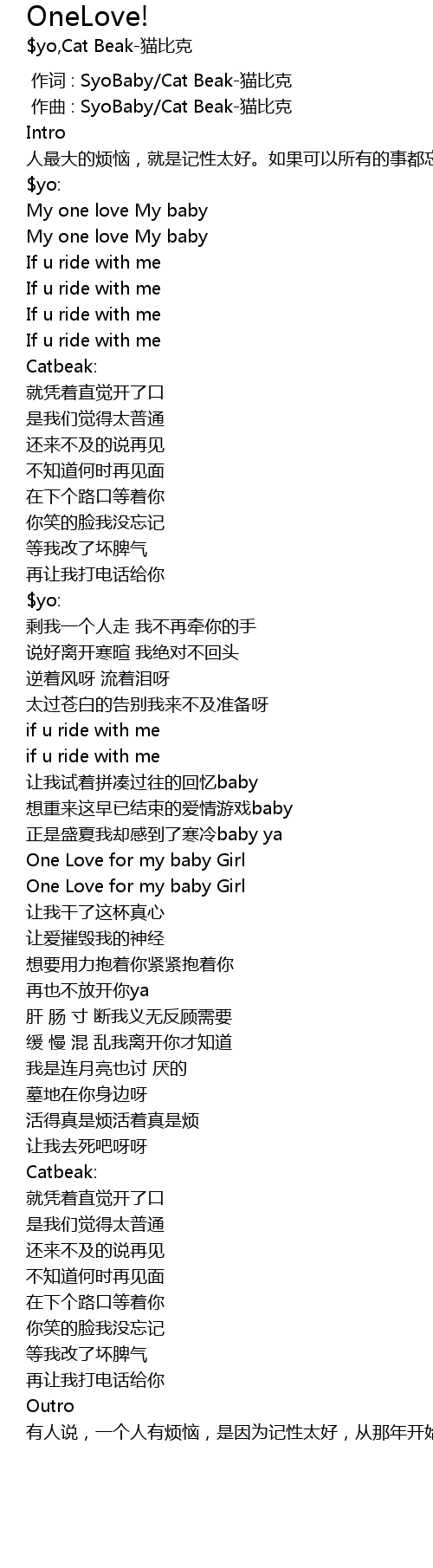 | [00:01.000] | 作曲 : SyoBaby/Cat Beak-猫比克 |