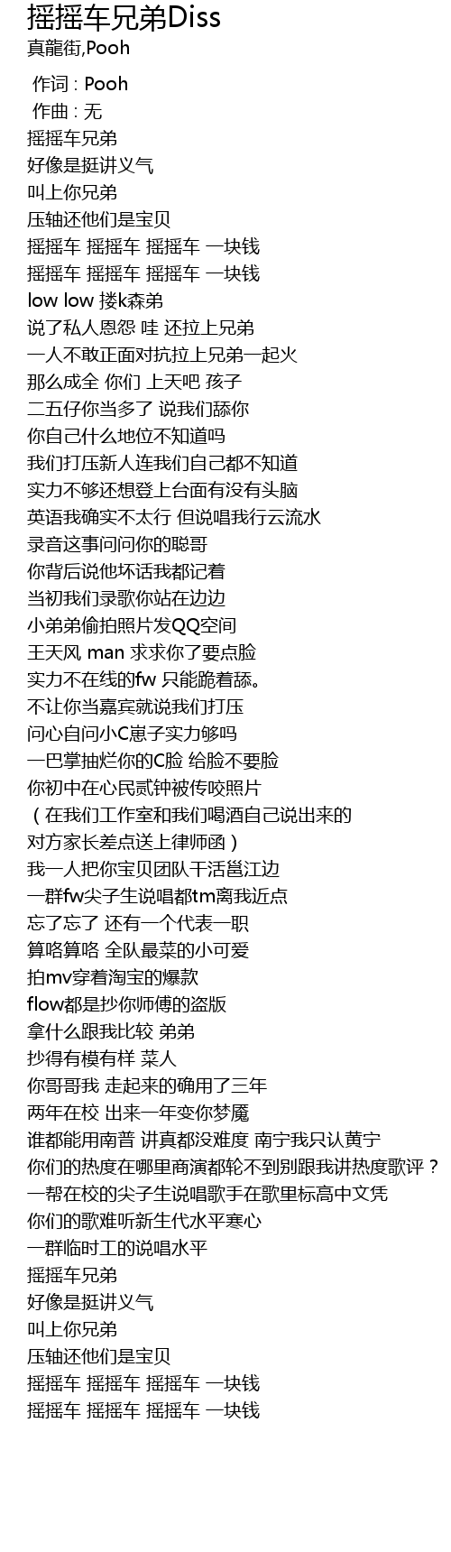 | [01:51.384] | 你们的歌难听新生代水平寒心 一群临时工的说唱水平 |