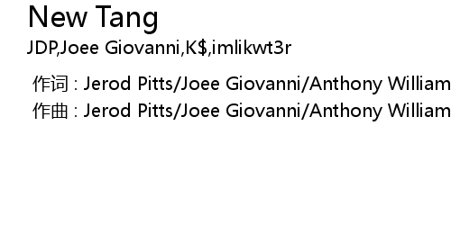| [00:00.000] | 作曲 : Jerod Pitts/Joee Giovanni/Anthony Williams/Kevin Risper |