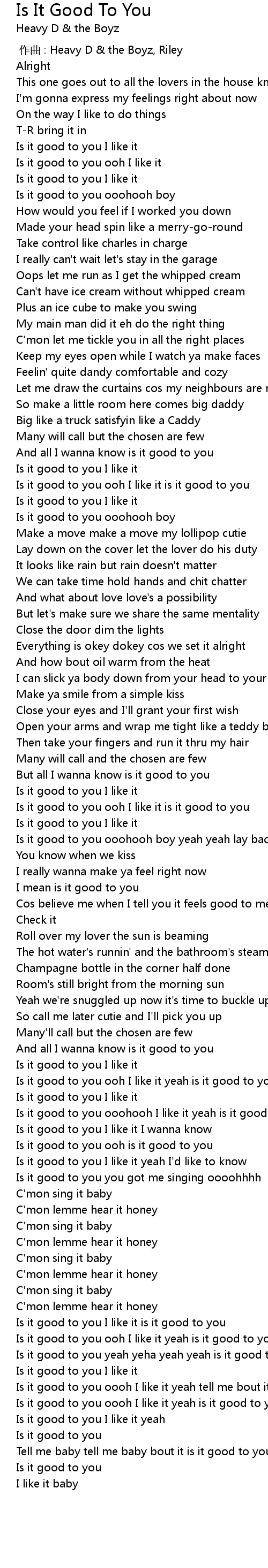 | [04:33.84] | Is it good to you oooh I like it yeah is it good to you |
