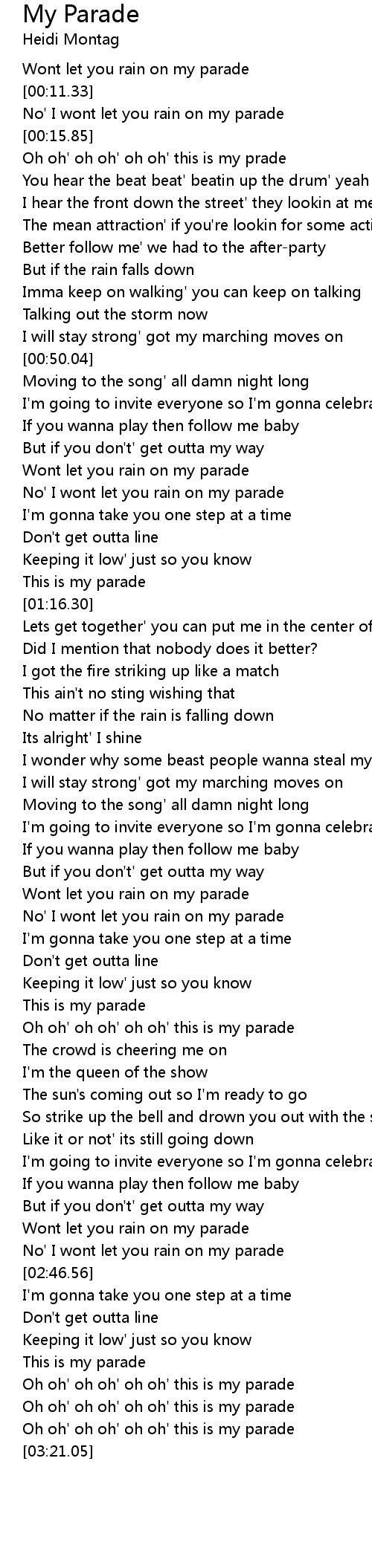 Wont let you rain on my parade |